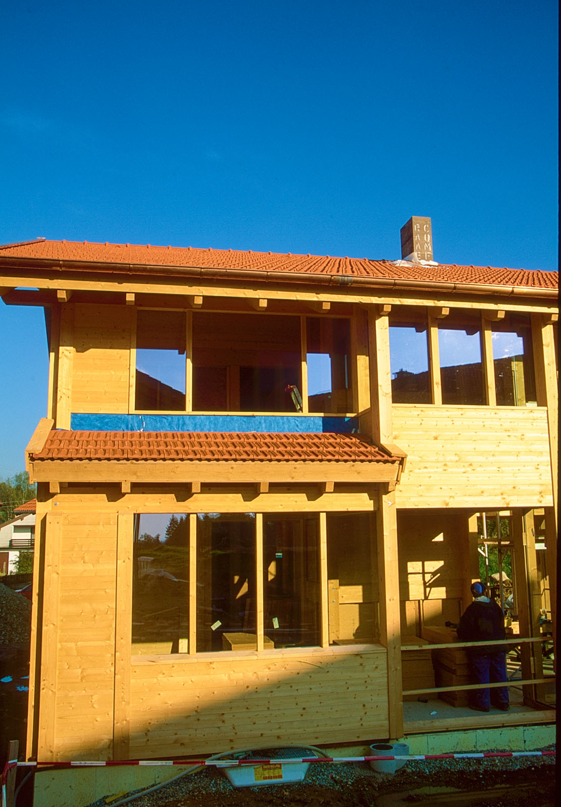 Anruf aus Santa Barbara: „wir hätten gerne so ein Holzskeletthaus mit viel Glas ...“ geplant wurde 1997 über das Internet - beim Weihnachtsbesuch in Deutschland wurden alle Verträge mit den Unternehmern unterschrieben - im darauffolgenden September sollte alles bezugsfertig sein, war es auch ... fast!
