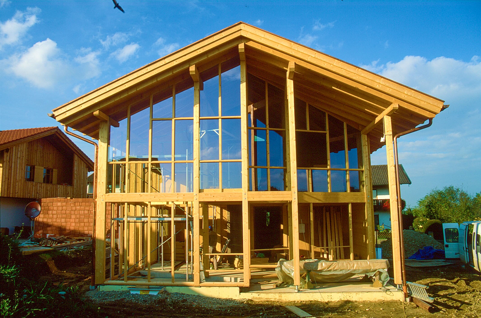 HOLZSKELETTHAUS MIT INTEGRIERTEM WINTERGARTEN